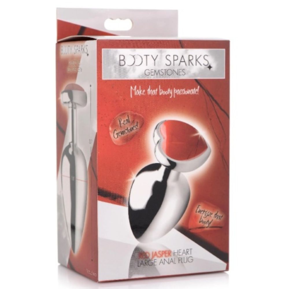 Este plug anal metálico cuenta con una gema de jaspe rojo en forma de corazón...