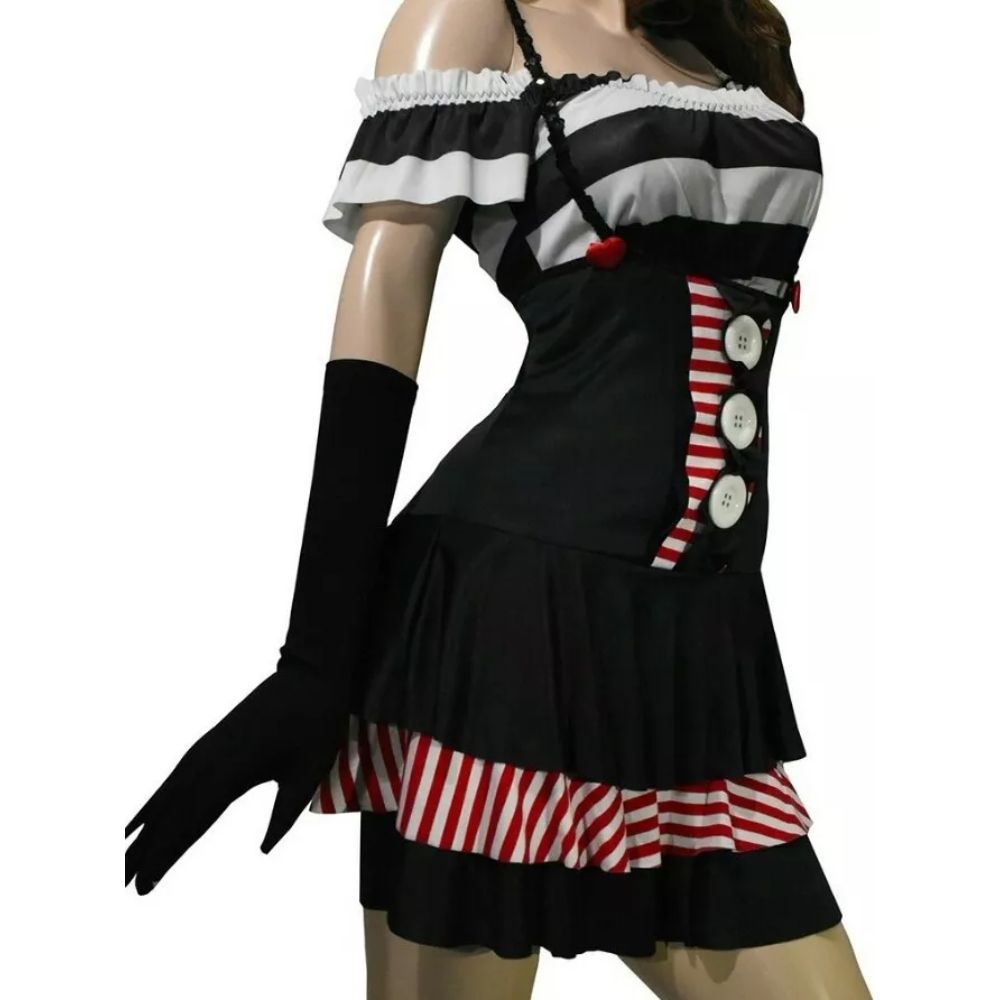 Disfraz de mimo callejero. Es un minivestido con falda de holanes, confeccionado con telas de...