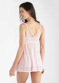 Elegante babydoll confeccionado en tela de encaje y gasa, con tirantes. Tallas CH, M, G y XG
