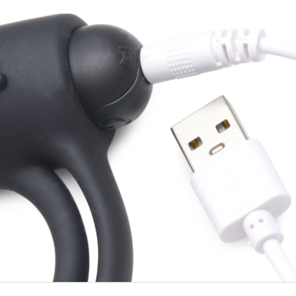 Este anillo vibrador para el pene de Bang! cuenta con dos anillos elásticos, uno para el tronco y otro para el saco, para aumentar la dureza y la duración de la erección mientras proporciona un abrazo satisfactorio. Este potente anillo vibrador para el pene también cuenta con una intensa bala vibradora colocada estratégicamente para estimular el clítoris de tu amante con cada empuje. Elige entre 4 velocidades y 7 patrones de vibración para hacer zumbar tu pene y tus pelotas, dándote placer a ti y a tu pareja con una capa adicional de placer a tu rutina sexy habitual. Utiliza el mando a distancia incluido y cambia las cosas sobre la marcha para mantener la frescura. Este sensual anillo para el pene con vibración está hecho con silicon de primera calidad, aterciopelada y suave, para una sensación de lujo tanto para ti como para tu pareja. Estos anillos de pene de silicon no contienen ftalatos, son seguros para el cuerpo y resistentes al agua para que puedas jugar sin preocupaciones. Recarga la bala vibradora cuando se agote la energía con el cable de carga USB incluido.