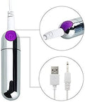 Vibrador tipo bala 100% resistente al agua. Diez modos de vibración, regulador de botón, recargable con cable USB (incluido), libre de ftalatos, hipoalergénica, resistente a los olores y fácil de limpiar.