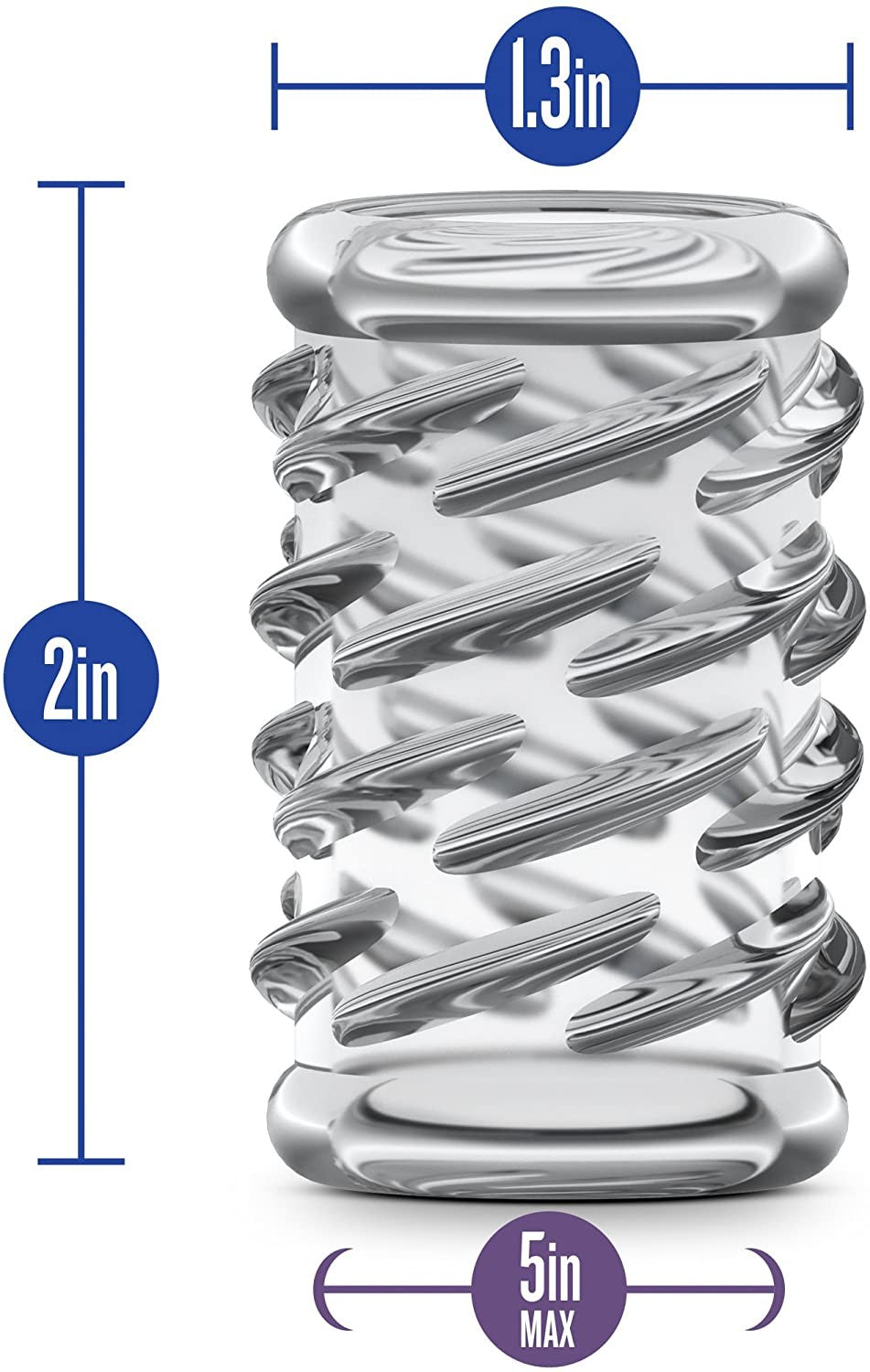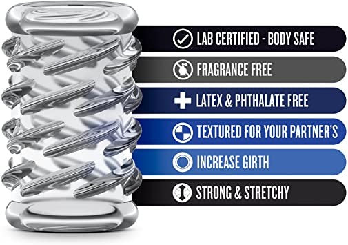 Funda corta, elástica, para aumentar la circunferencia y con textura para el placer de tu pareja. Es fácil de usar, simplemente deslícela por el pene ¡¡Se queda en su lugar! Hecho de elastómero (TPE) seguro para el cuerpo, libre de fthalato y látex. Medida: largo 2.04 pulgadas; diámetro: 1,57"; circunferencia 4.92 pulgadas. Talla única.