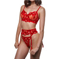 Brasier con varilla que realza el busto y el escote. Un suntuoso liguero con tirantes finos ajustables y una pantie tipo tanga a juego. Talla Mediana.
