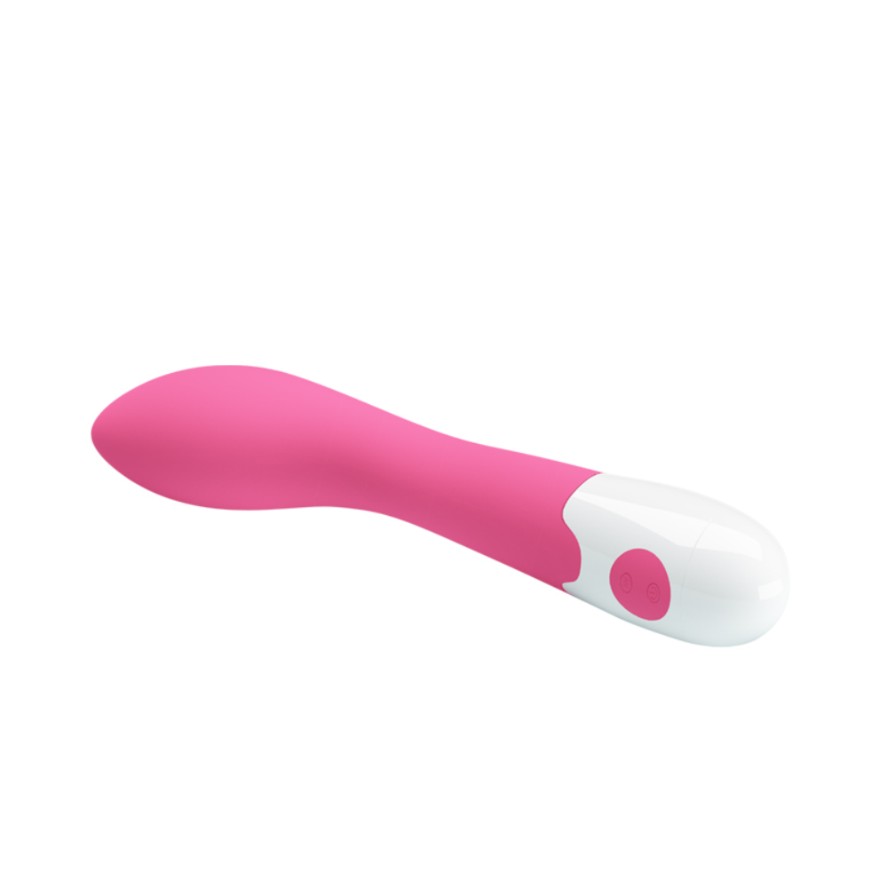 Vibrador diseñado para estimular punto G. Fabricado en silicón. 30 velocidades. Requiere 2 baterías AAA (no incluidas).