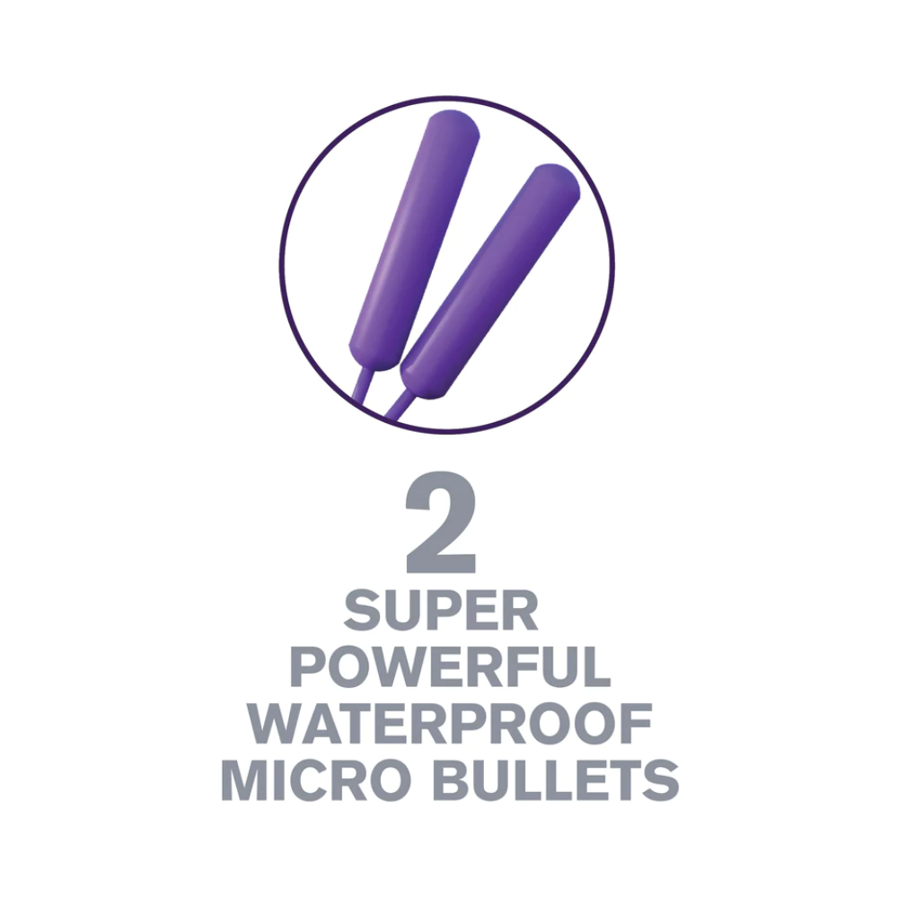 Combinados, el resultado de las dos balas es mágico. Elija entre cinco potentes velocidades y encuentre la configuración adecuada para usted. A ella le encantarán las vibraciones del clítoris de los conejos que provocan y complacen su clítoris, mientras que él disfruta del apretón ultra apretado que provoca el eje y las bolas.