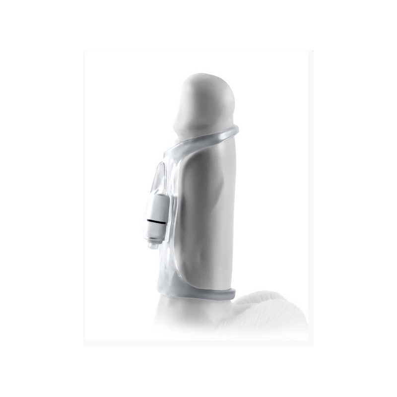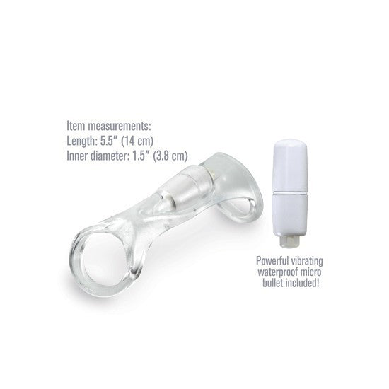 Suave y excitante, así es esta funda para el pene que proporciona una mejor erección y estimulación extra. ¡¿Qué más puede pedir tu pareja? Los anillos son elásticos y encajan cómodamente alrededor de la base del pene, retrasando la eyaculación, mientras que la funda excita los sentidos y proporciona un alucinante clímax para los dos. En la parte superior se encuentra un estimulador de clítoris alimentado por una micro bala vibradora. Elije entre tres velocidades de gran alcance y dale a tu pareja un zumbido que nunca olvidarán! Fabricada con silicona premium Elite. Longitud: 14 cm, diámetro int