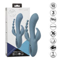 El potente masajeador de triple penetración utiliza 3 velocidades de pulsación en el eje curvado sensualmente para estimular el punto G y penetrar estremecedoramente. Mientras que una cola de cuentas se estremece y un sensual conejo parpadea al ritmo de 10 potentes funciones de vibración independientes.