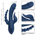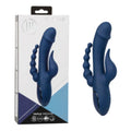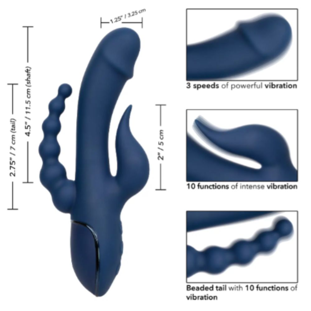 El potente masajeador de triple penetración utiliza 3 velocidades de vibración a través del eje curvado sensualmente para una penetración provocativa en el punto G. Mientras que una cola con cuentas se estremece y un teaser contorneado parpadea al ritmo de 10 potentes funciones de vibración independientes.