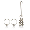 Este conjunto de joyas corporales plateadas para el pezón y el clítoris que no se perforan incluye anillos ajustables para el pezón, sin níquel y que no se empañan, y un adorno para el clítoris con cuentas de plata ornamentales en cada uno. Titiva tu cuerpo con las joyas que encenderán tus pasiones e invitarán a la intriga.