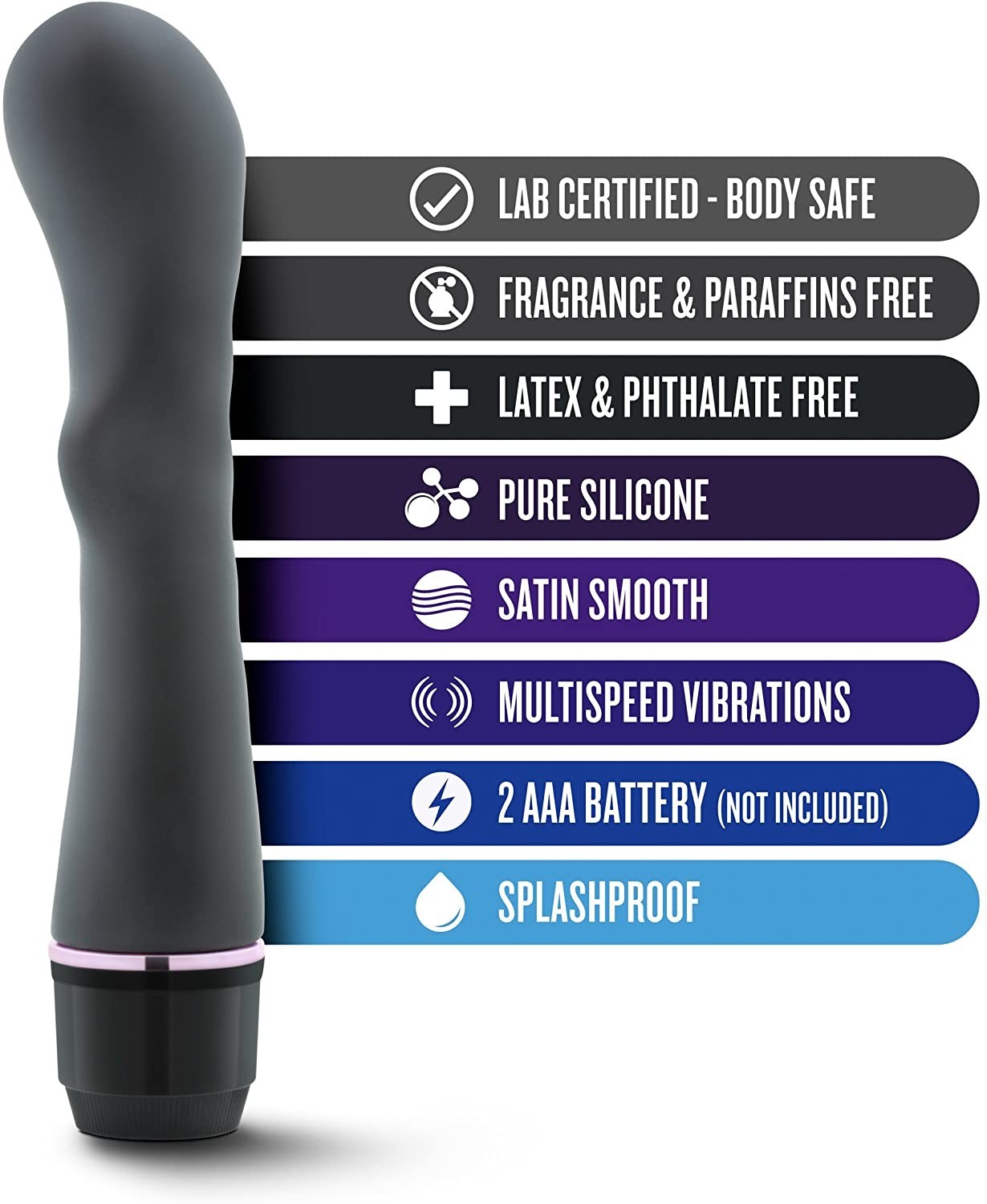 Vibrador de velocidades múltiples personalizables y una operación fácil para principiantes. Diseñado para tocar áreas sensibles a lo largo del canal vaginal, incluido el punto G ¡por supuesto! Simplemente gire la perilla ubicada en la base para activar una vibración estable y confiable. Siga girando para aumentar o disminuir la intensidad de la vibración. Fabricado de silicón con acabado piel de durazno, libre de látex y ftalatos, resistente al agua, no sumergible.