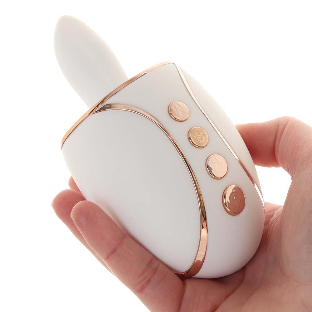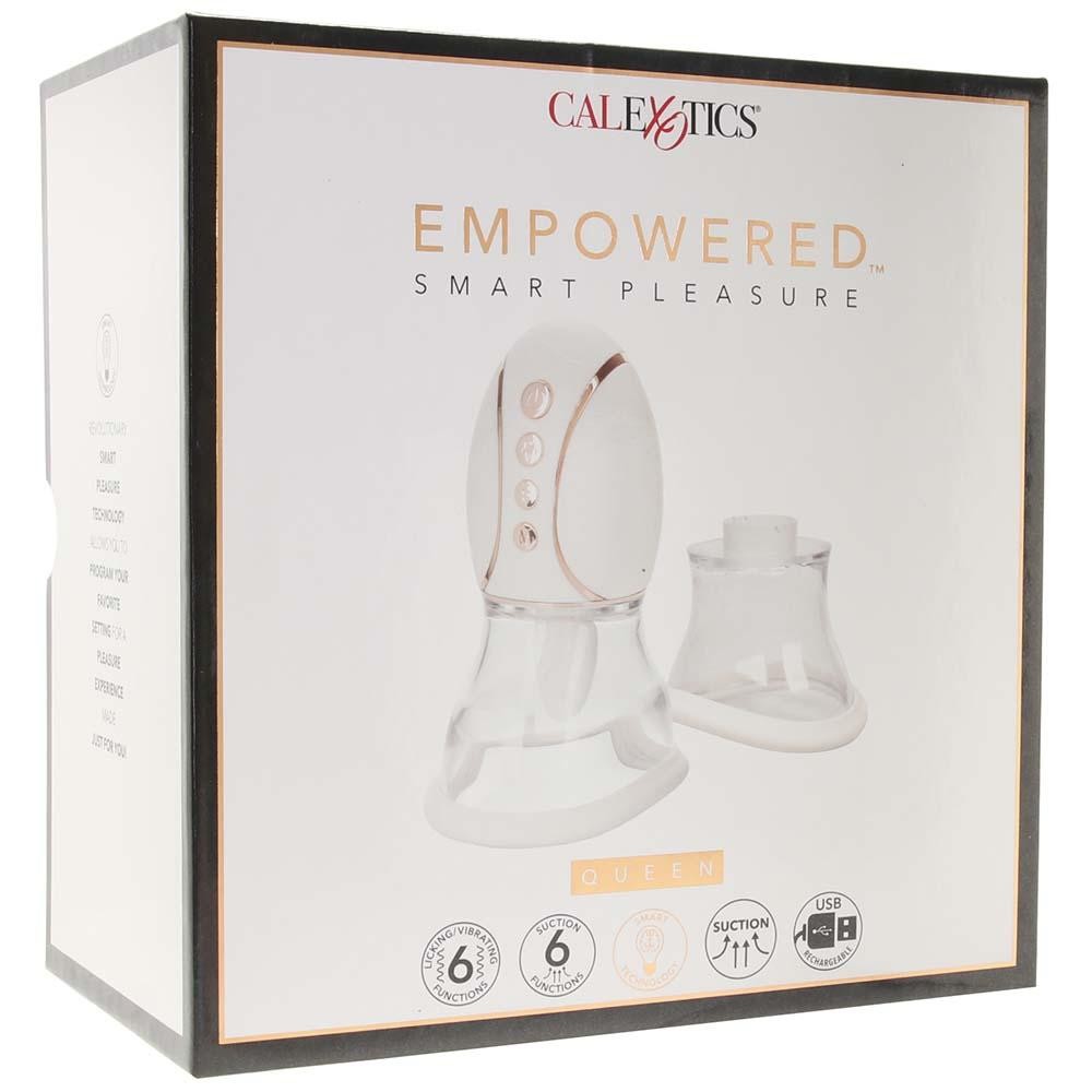 Empowered ™ Smart Pleasure Queen ofrece 36 combinaciones alucinantes de acción de succión, vibración y parpadeo. Es tan inteligente que te permite programar tu configuración favorita.