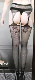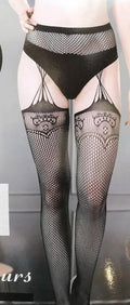 Elegante medias de tejido suave de malla, con diseño a lo largo de la cintura y los muslos. 95% nylon y 5% elastane. No incluye tanga