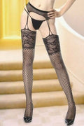 Elegante medias de tejido suave de malla, con borde de diseño grabado a lo largo de la cintura y los muslos. 95% nylon y 5% elastane. No incluye tanga