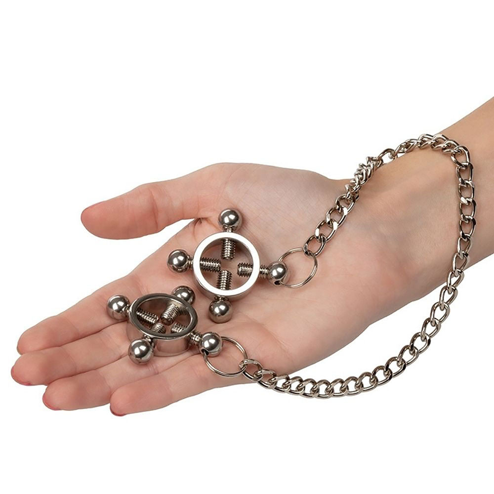 Explore la sensación elevada con las 2 abrazaderas multiuso totalmente ajustables, la prensa de 4 puntos atornillada y la cadena de burla. Alcanza nuevos niveles de placer lúdico con la prensa atornillable de 4 puntos con tornillos totalmente ajustables. Sujete los ganchos traviesos al pezón o en cualquier parte del cuerpo y disfrute de cada ráfaga de dolor y placer.