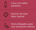 Condones ultra delgados para mayor satisfacción sexual, la lata contiene 3 condones extra sensibles.
