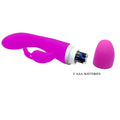 Vibrador dual fabricado con suave silicón de alta calidad y tiene 30 increíbles funciones de vibración. Su diseño permite estimular directamente el punto G y simultáneamente el pequeño conejito estimula el clítoris.