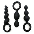 Un set de 3 juguetes para la estimulación anal con tamaño similar pero con formas muy diferentes para que vives nuevas experiencias. Apto para todos los públicos y gustos. Puedes disfrutar de Satisfyer Plug anal tanto si eres una persona experta como principiante, con la compañía de otros juguetes eróticos o sin ellos. Medidas plug 1: 13.5 cm. Medidas plug 2: 13.5 cm. Medidas plug 3: 14 cm, Insertables: 7-8 cm. Diámetro: 2.7 cm. Uso e higiene: Usar siempre con un lubricante anal base agua. Después de cada uso limpiarlo con un limpiador de juguetes para su mayor higiene.