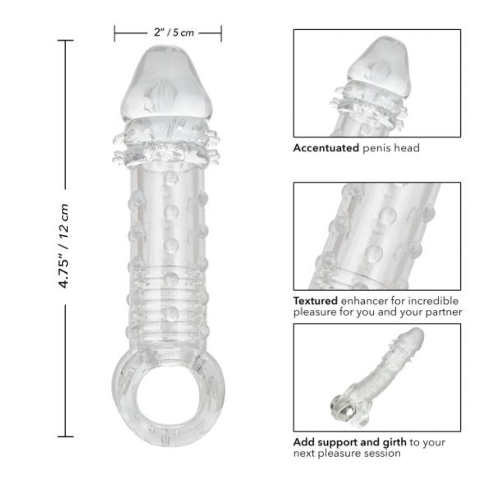La circunferencia adicional, la textura tachonada emocionante y las 2 pulgadas de longitud dejarán a su dama temblando. La correa de escroto incorporada y la manga gruesa proporcionaron un soporte de erección adicional y aumentaron la resistencia para prolongar e intensificar el placer de cualquier pareja. Aumente su placer y nunca se conforme con menos cuando se trata de tamaño, nuestro extensor súper elástico con correa de escroto de apoyo hará que usted y su amante anhelen más, más, más.