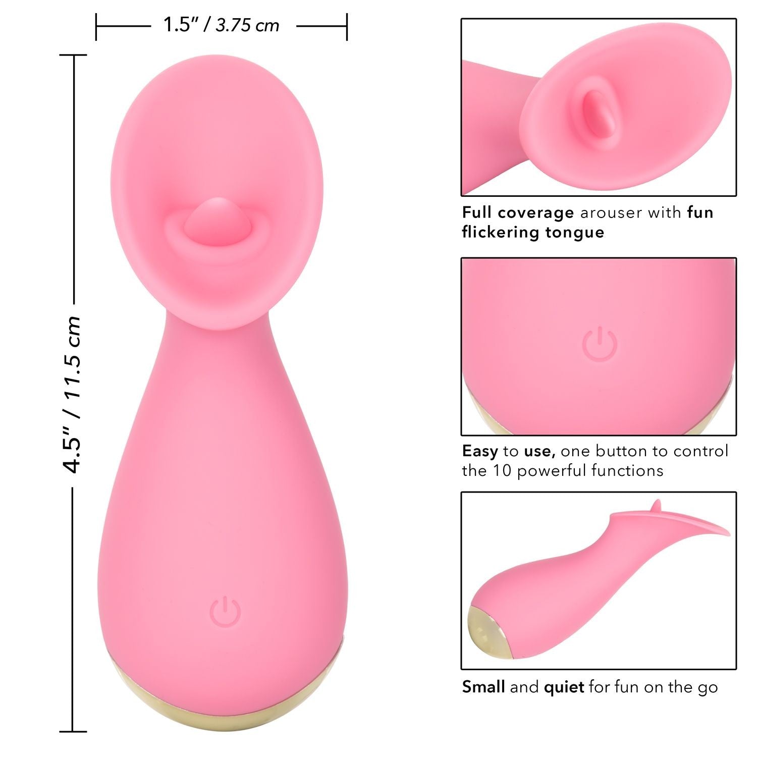 Deslice el cosquilleo Slay ™ #TickleMe en su bolso de mano para disfrutar de un temblor de rodillas donde quiera que vaya. El pequeño despertador cabe entre tus dedos para que puedas ofrecerte una tentación precisa y emoción con vibraciones parpadeantes. Diviértase mientras parpadea a través de 10 indulgentes funciones de vibración, pulsación y escalamiento con el botón de control de fácil toque. El excitante de cobertura total ultra suave y el teaser con forma de lengua parpadeante son excelentes para explorar los puntos sensuales dulces y los puntos de placer íntimo con facilidad. Controle sin esfuerzo el placer puro con un botón de silicona de fácil toque y manténgalo presionado durante 3 segundos para encenderlo o apagarlo. Utilice el control suave de un solo botón para disfrutar de hasta 1,5 horas de placer vibratorio. Cargue su pasión en solo 2.5 horas conectando el cable USB provisto en el puerto de carga autosellante en la parte posterior del masajeador.