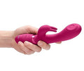 Vibrador de conejo de triple acción de onda y pulso, para estimulación dual en Punto G y clítoris, con 10 funciones, recargable, hecho de silicona y sumergible.