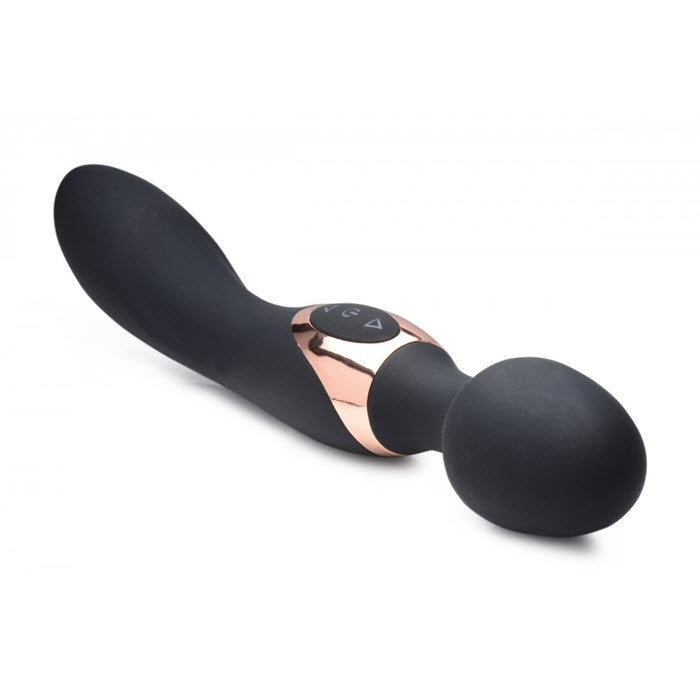 ¡Disfruta de ambos extremos de esta elegante varita de masaje de silicona 2 en 1! ¡Este vibrador de doble función viene con un cabezal de masaje clásico con un cuello flexible en un extremo, y un mango vibrante suave y sedoso deliciosamente curvado para un área de contacto más amplia con posibilidades de penetración!